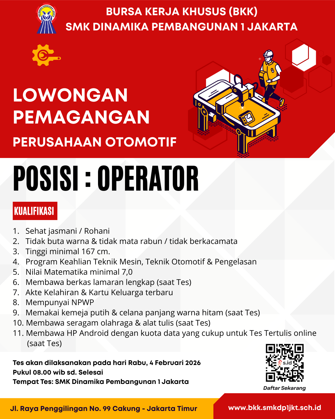 Tempat Tes: SMK Dinamika Pembangunan 1 Jakarta